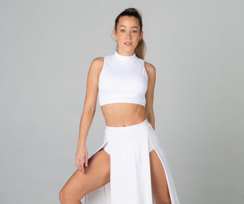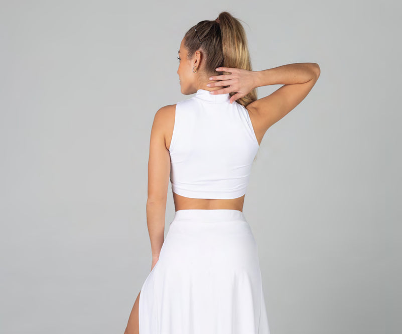 Top cuello alto y cinturilla bajo el pecho. Fabricado con Licra o punto. Todos los colores.