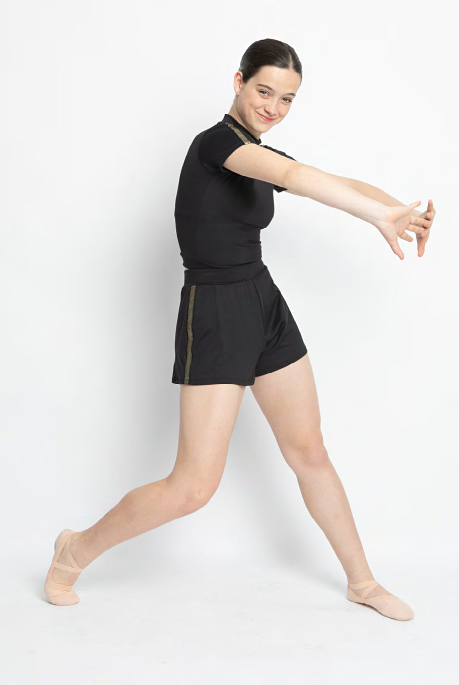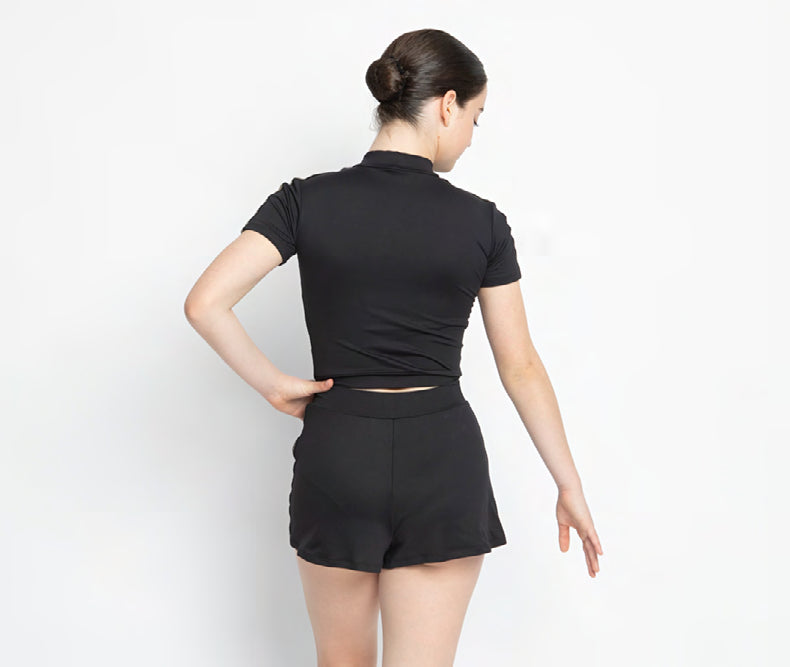 Top manga corta, cuello mao y cinturilla bajo pecho. Consultar más colores.