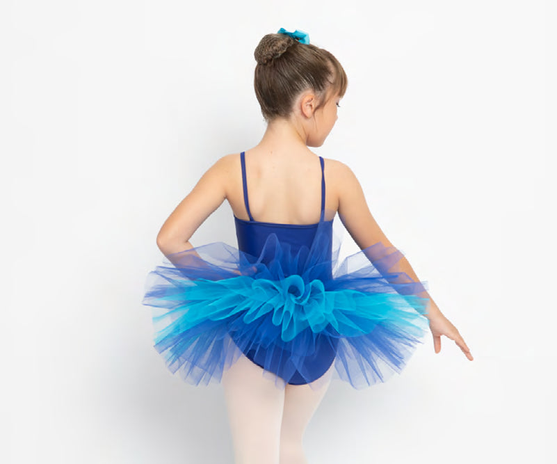 Maillot de licra forrado con volante de tul en el pecho. Falda con cuatro capas de tul