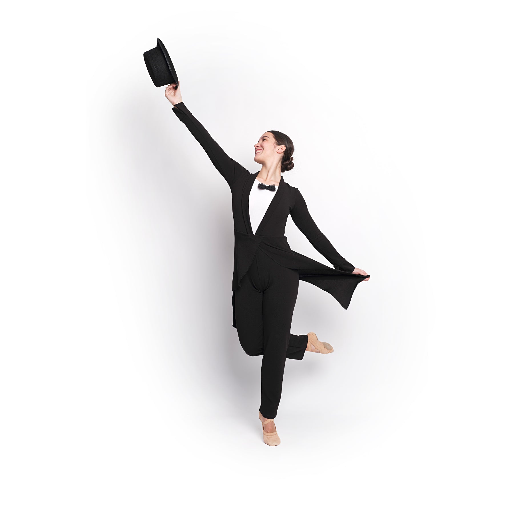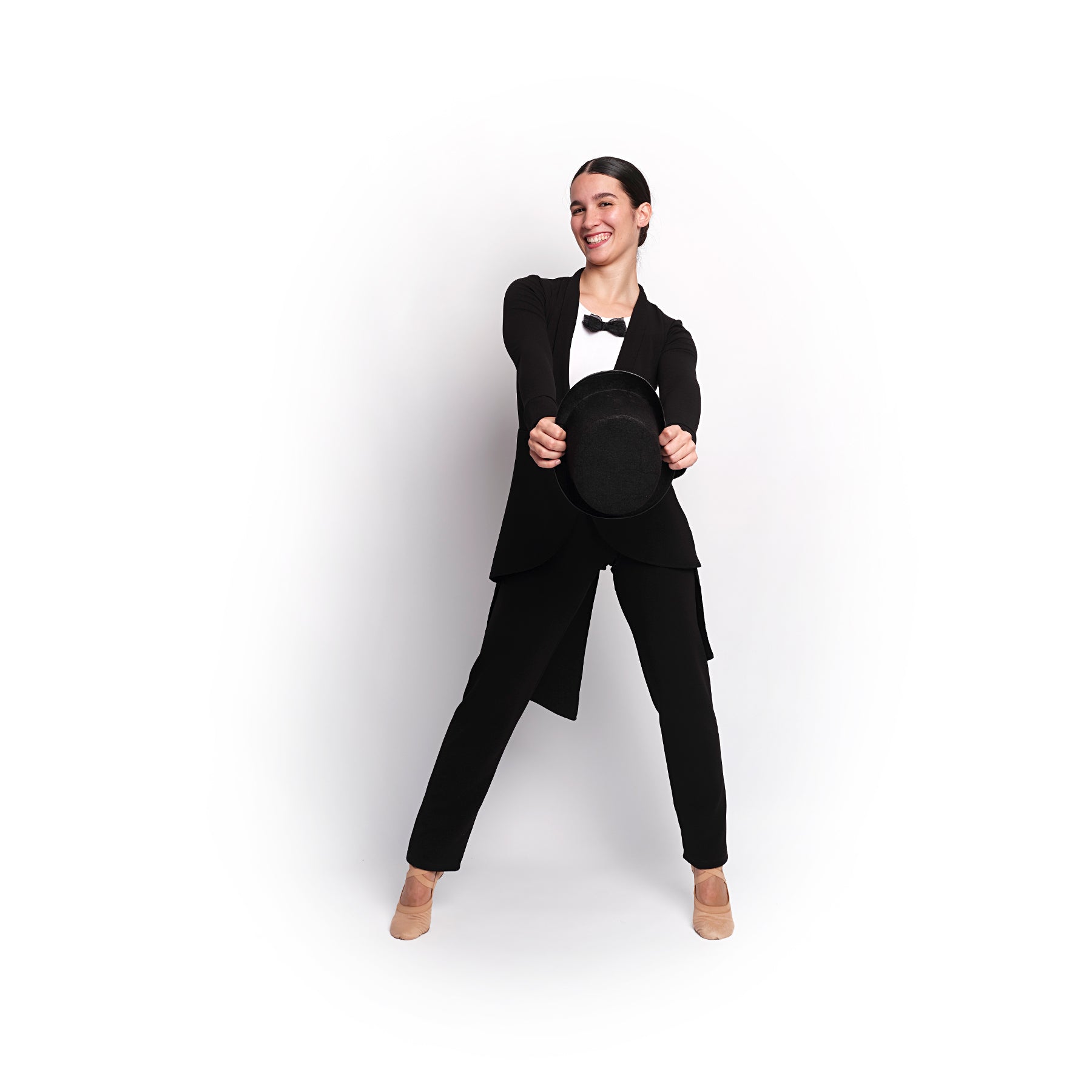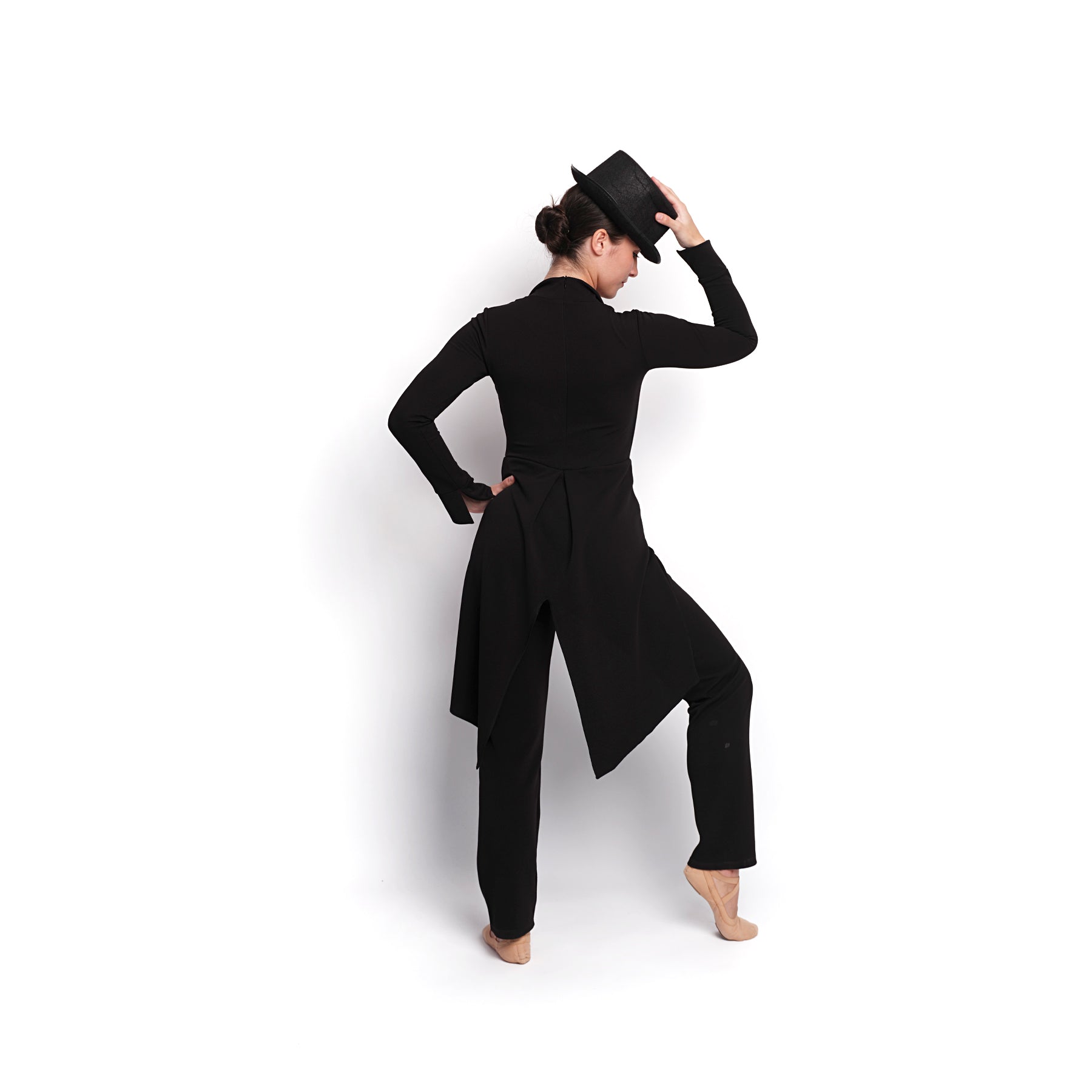 Túnica, maillot con pajarita y pantalón. Un todo en uno cerrado a la espalda con práctica cremallera invisible para una puesta rápida y cómoda.