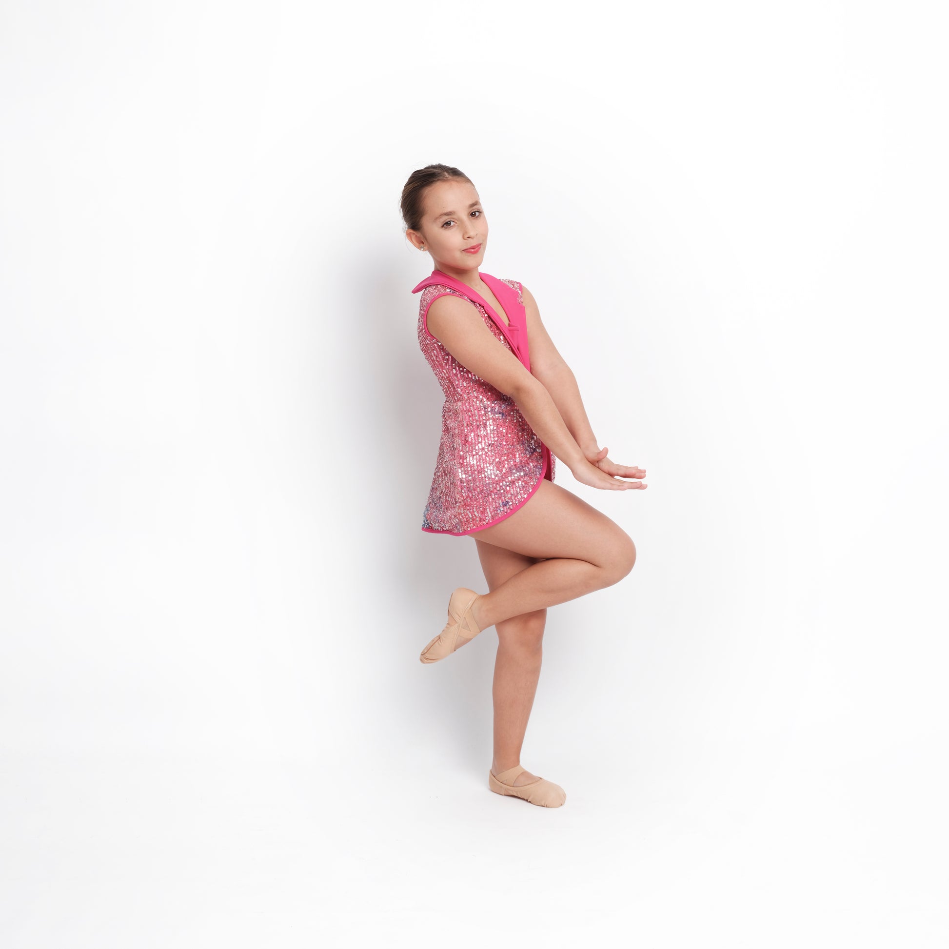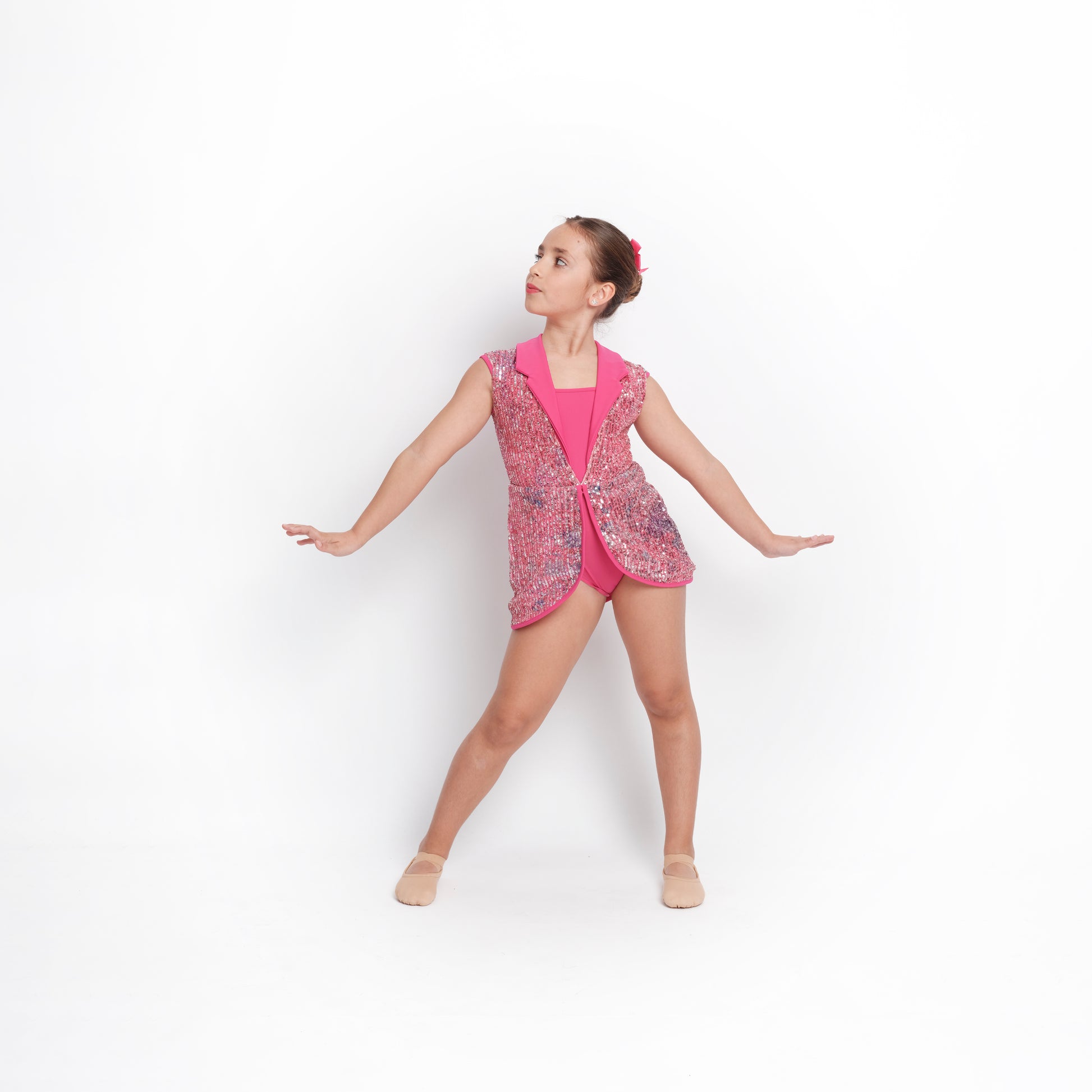 Chaleco con Solapa realizado en lentejuela. Maillot incorporado con cremallera a la espalda.