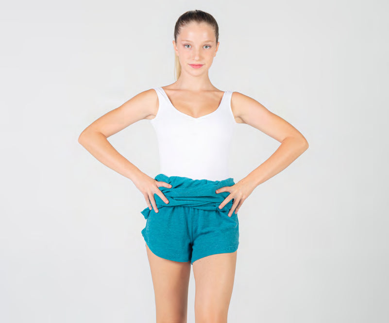 Mono amplio para calentamiento, goma ajustable en la cintura hecho con material viscosa o de lana.