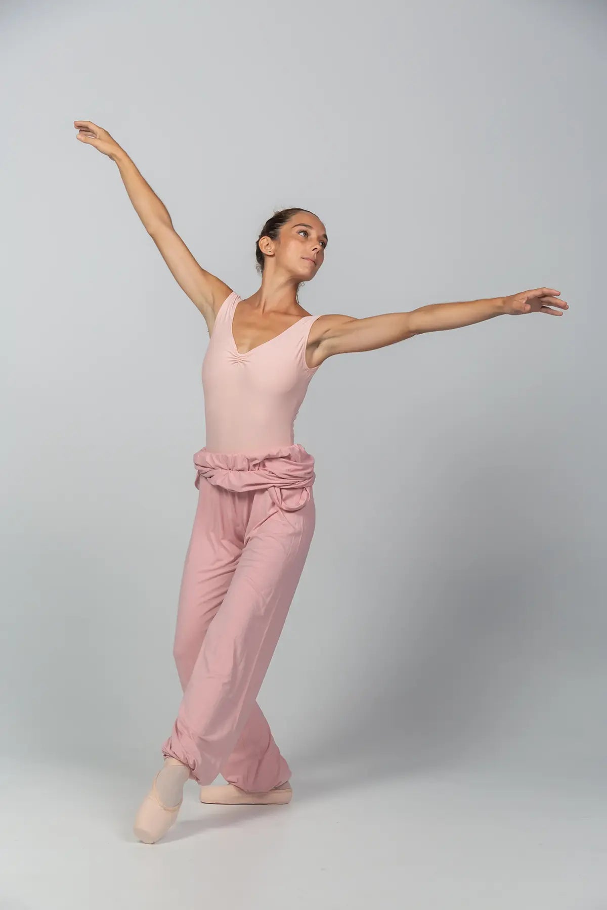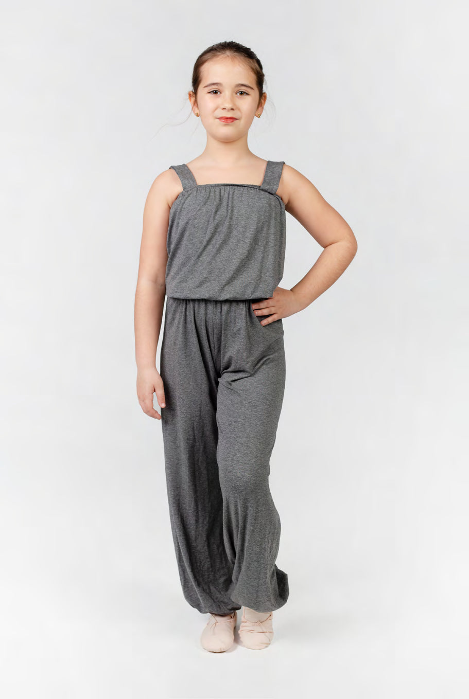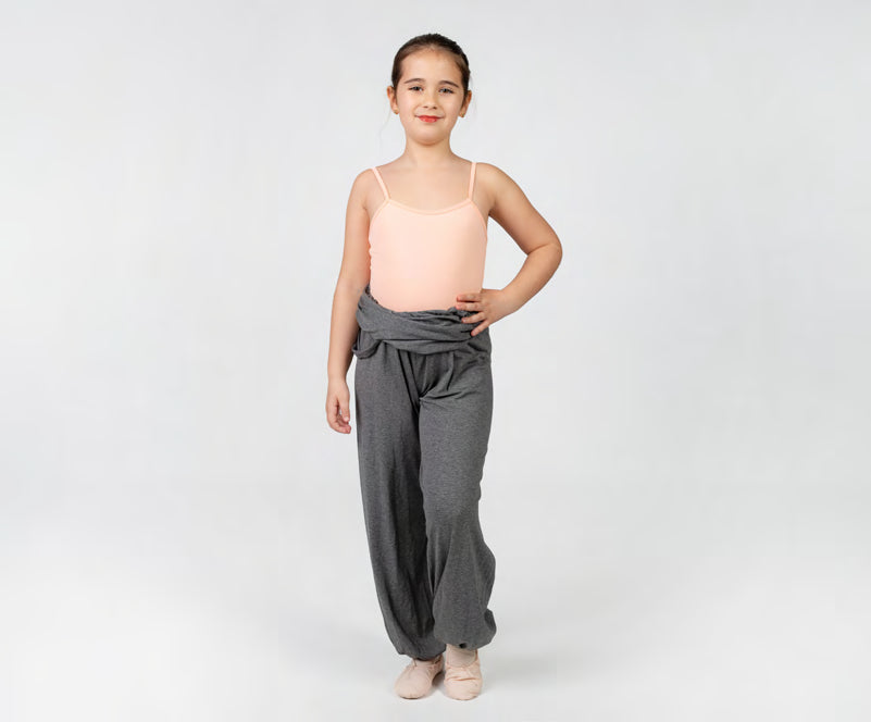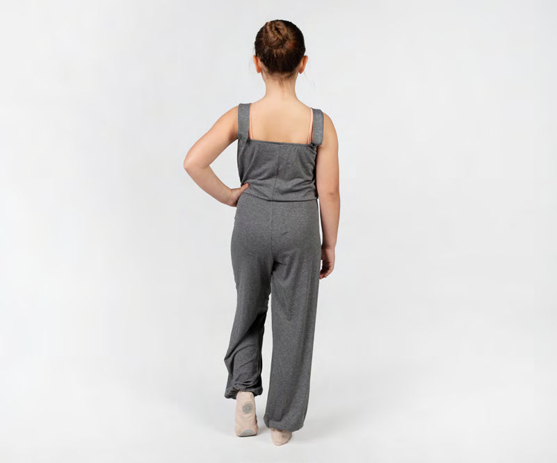 Mono amplio para calentamiento, goma ajustable en la cintura y en el bajo del pantalón.