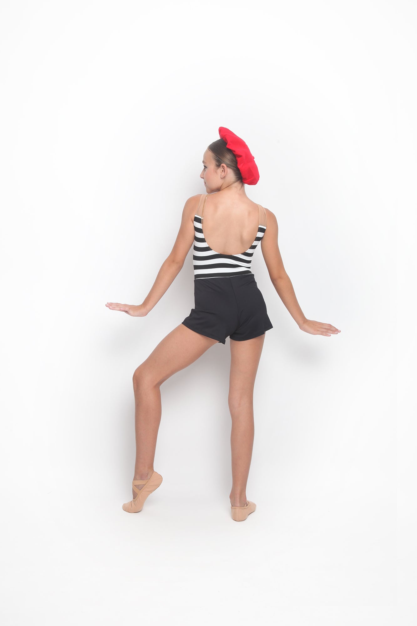 Vestuario de danza jazz confeccionado en lycra con forro delantero. Presenta un diseño de tirantes finos con cuerpo a rayas,...
