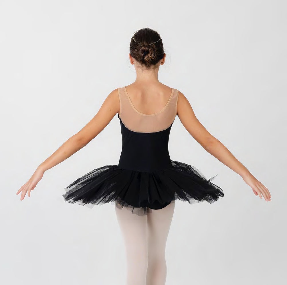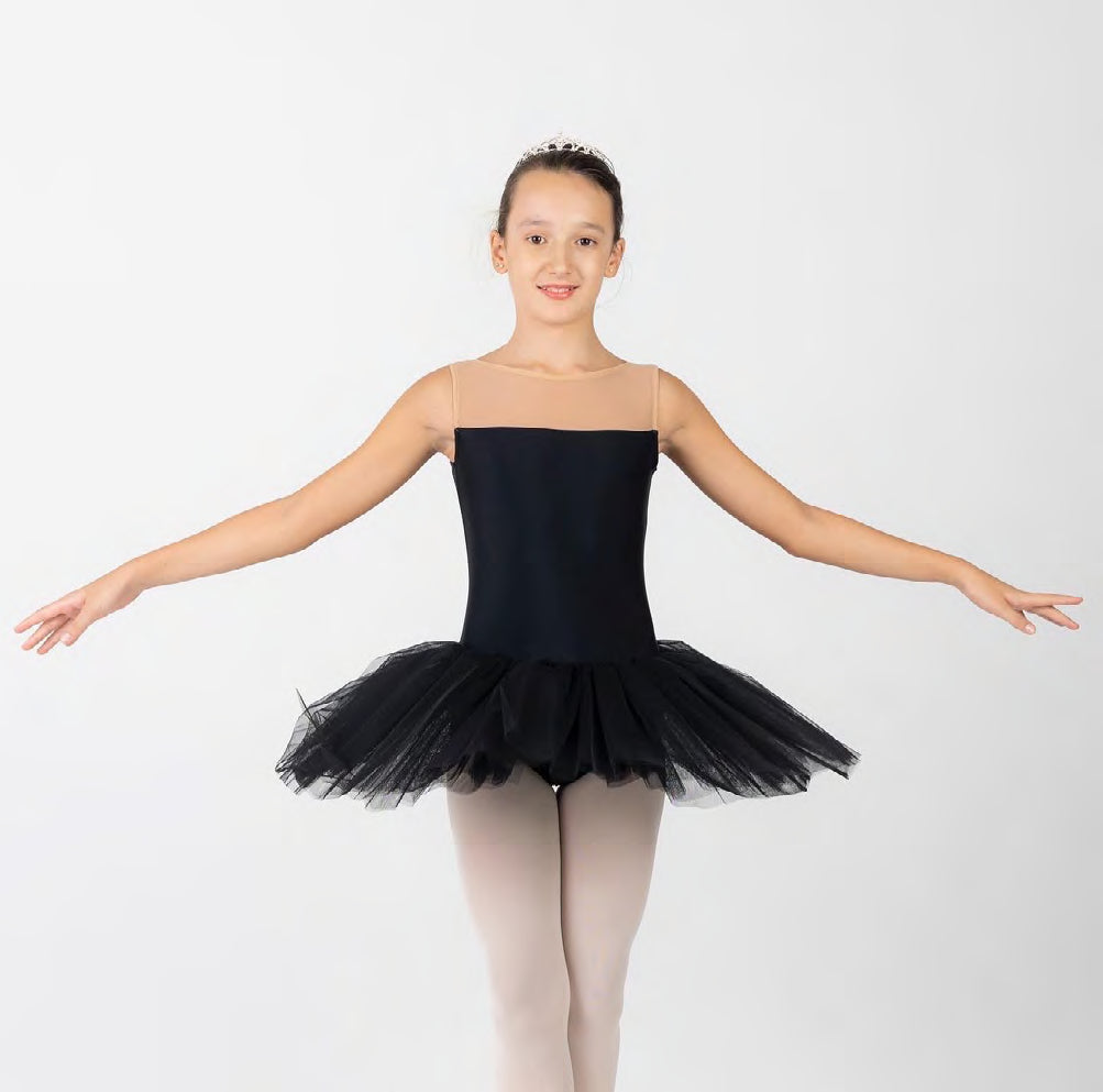 Tutú de licra con escote en transparencia.