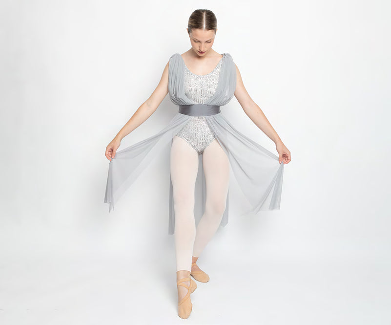 Vestido con maillot incorporado. Tul drapeado con bello acabado en forma de falda.