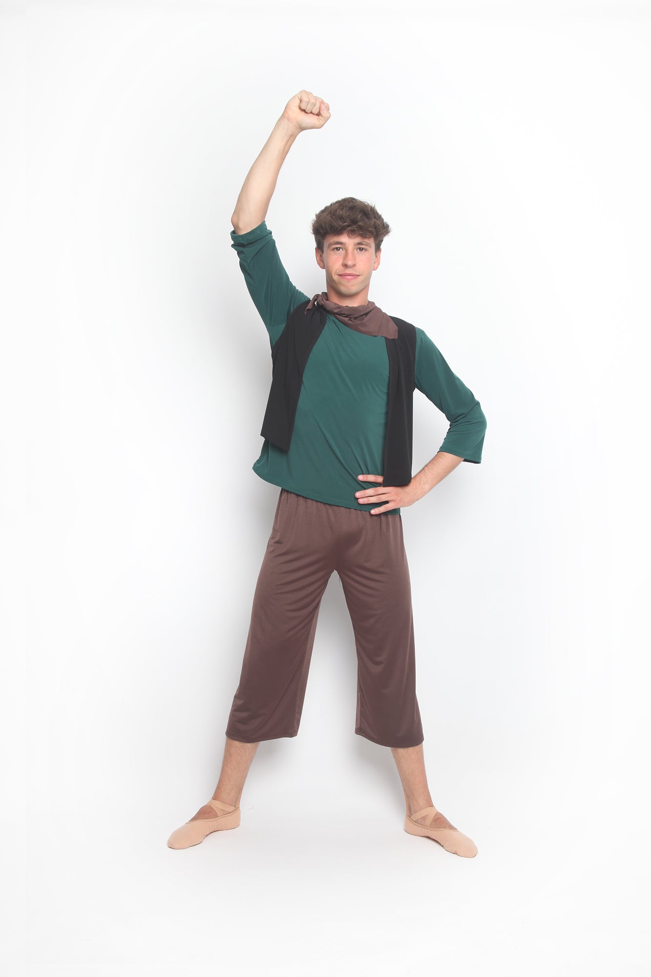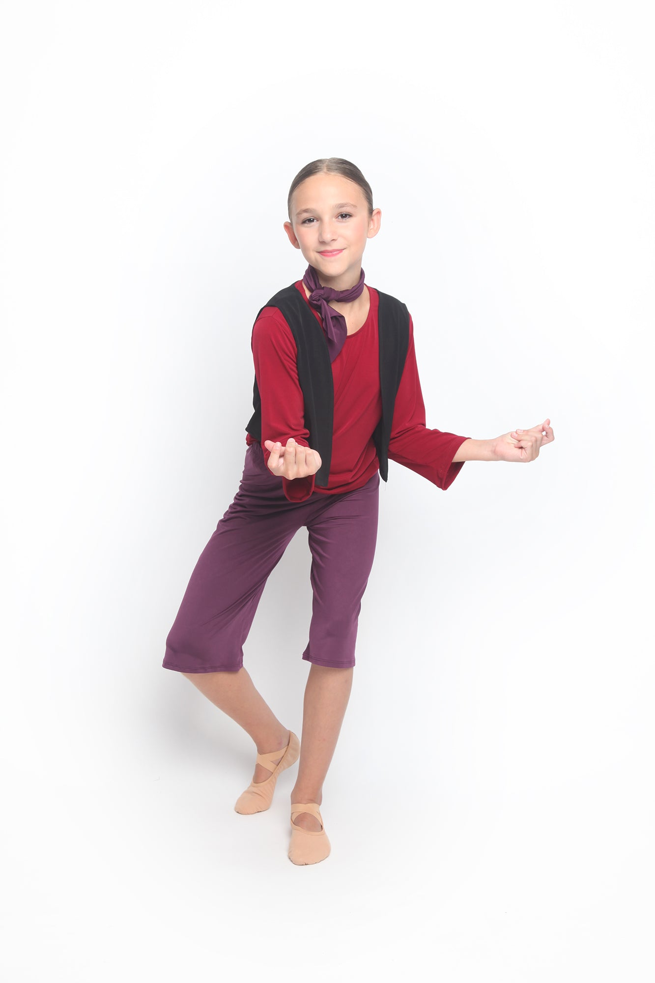 Confeccionado en punto, este conjunto combina comodidad con un estilo desenfadado y expresivo. Blusa manga tres cuartos. Chaleco negro sin cierre  que aporta contraste al pantalón amplio. Pañuelo al cuello que añade elegancia y cohesión en el conjunto.