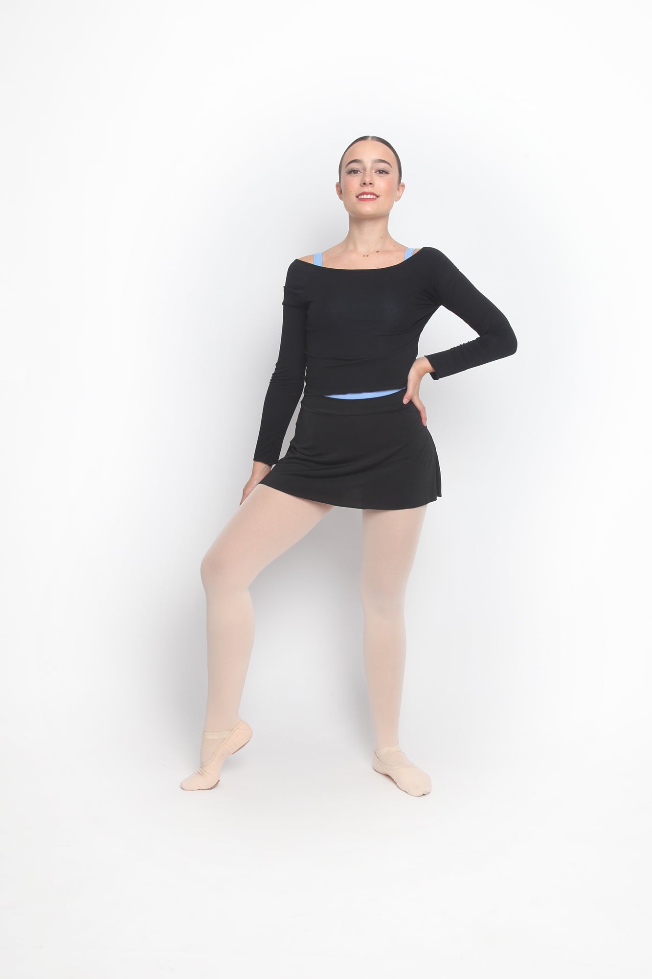 Top confeccionado en tejido de viscosa algodón , de ajuste ceñido pero muy ligero. Su diseño acompaña los movimientos del bailarín durante el calentamiento. Ofrece comodidad y transpirabilidad sin recurrir a tejidos de lana.