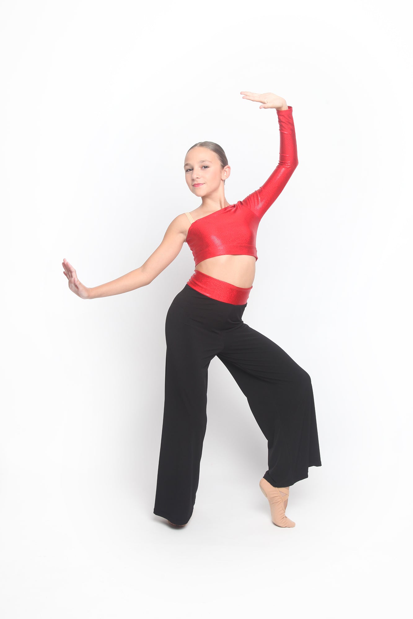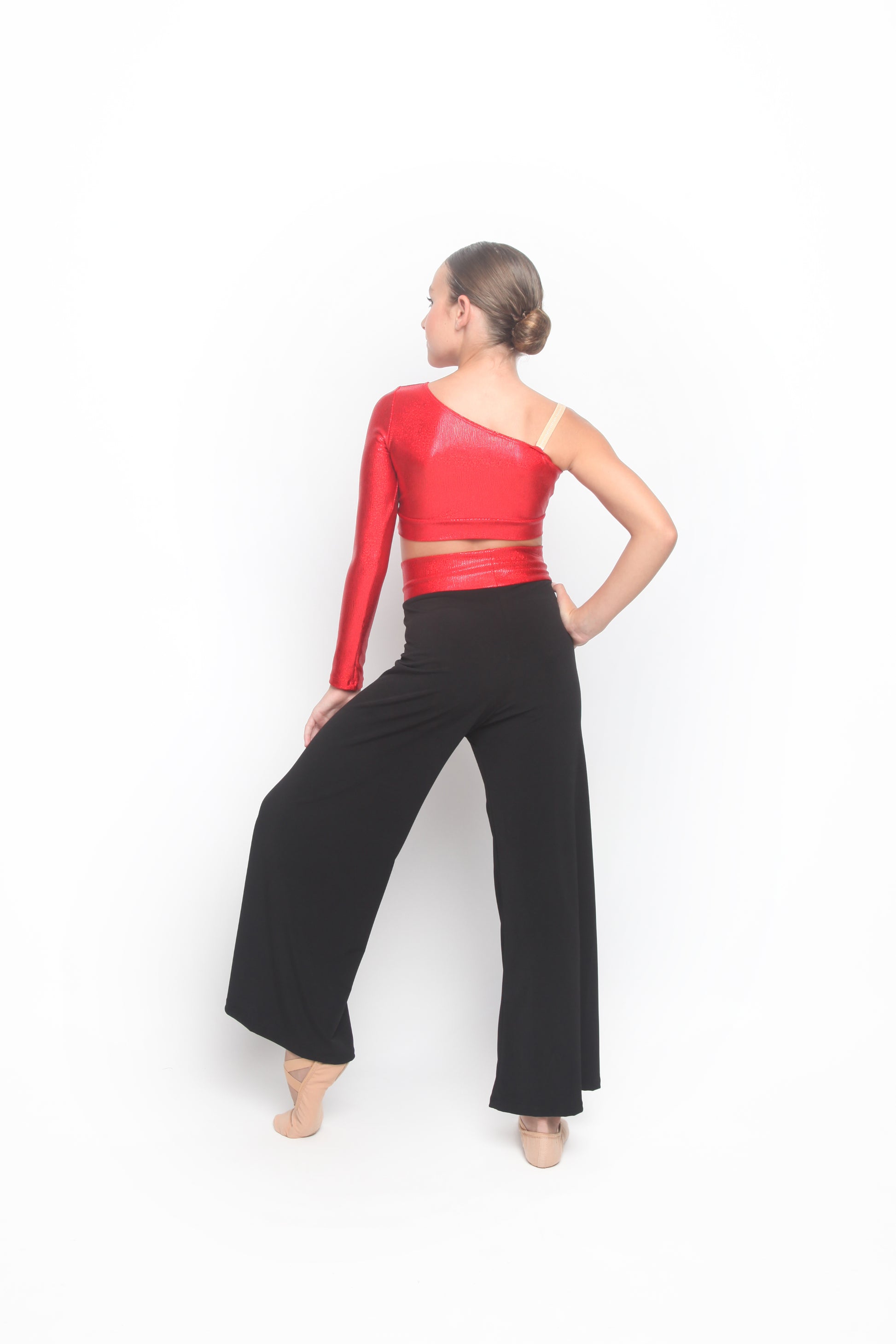 Top de corte asimétrico con una manga larga, que contrasta con el hombro al aire y escote pronunciado. Incluye tirante color piel para sujeción invisible y mayor comodidad.