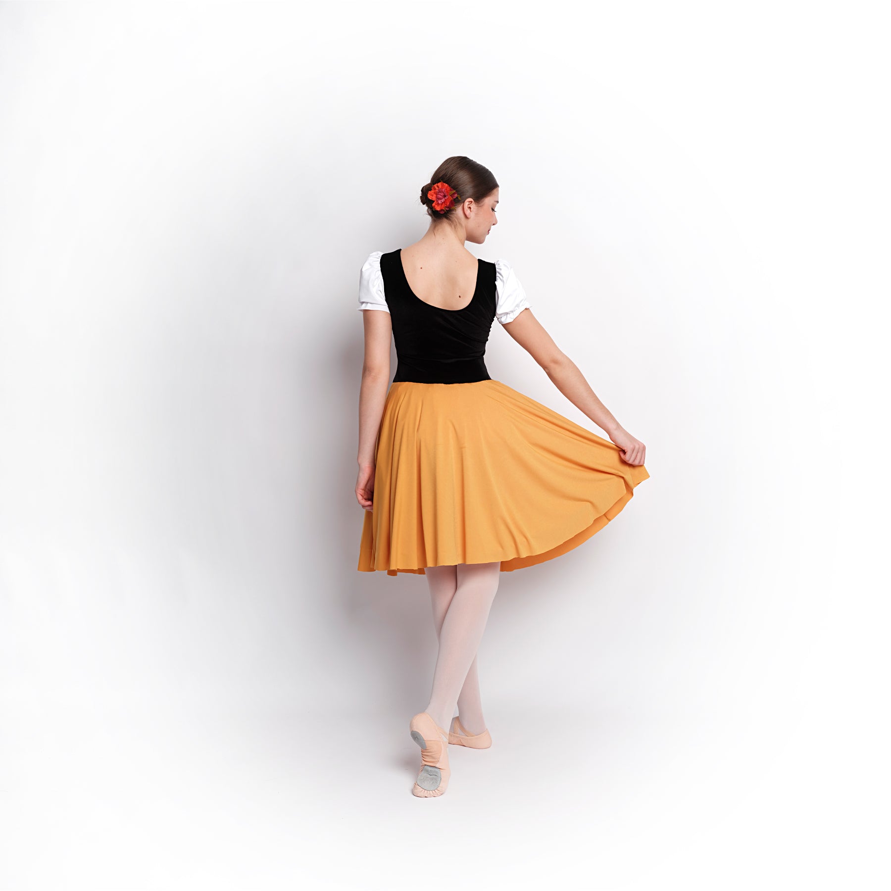 Vestido con maillot incorporado. Cuerpo de punto y cinturón en terciopelo elástico, mangas abullonadas y falda de punto con una capa de tul.