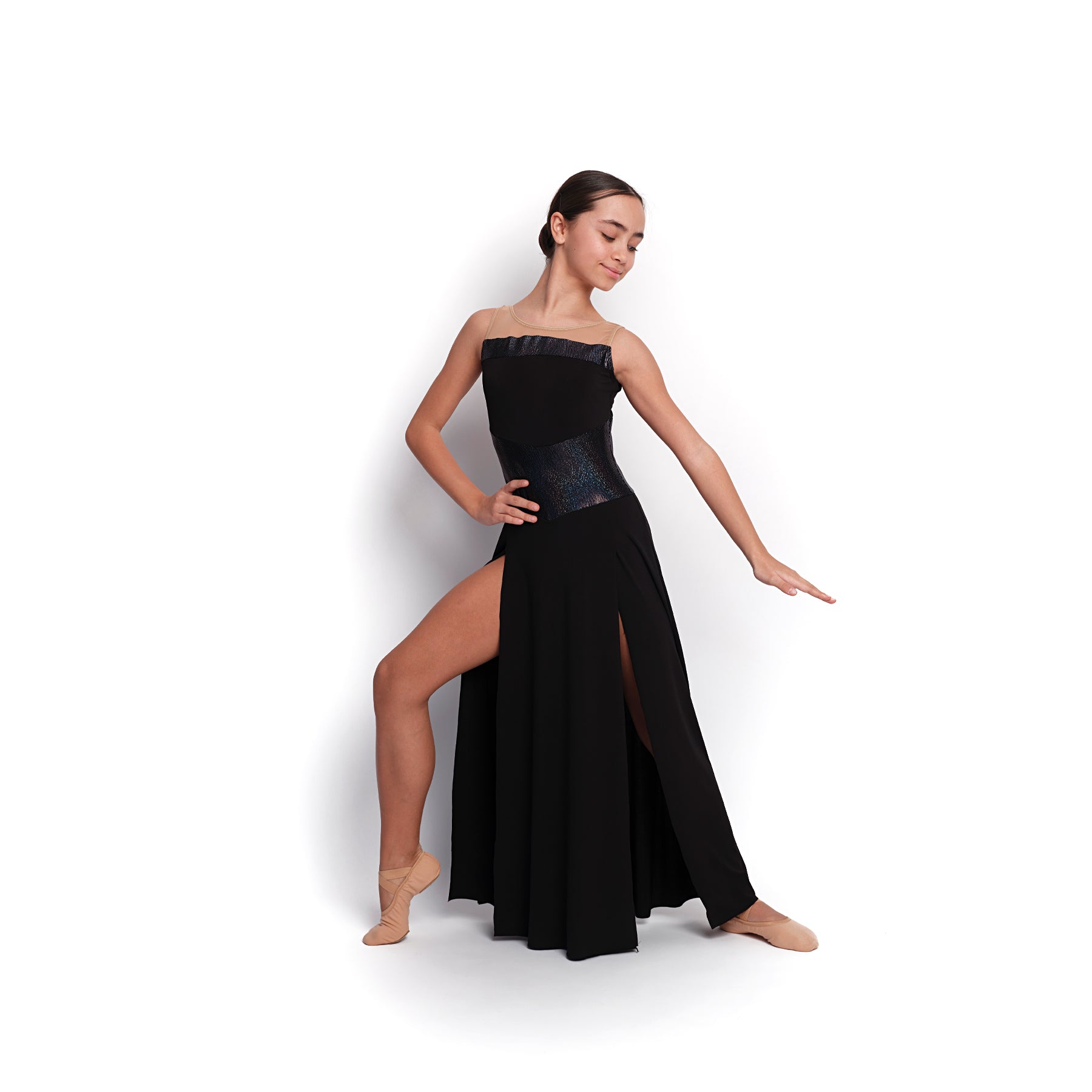 Vestido largo con maillot incorporado realizado en terciopelo y licra multibrillante. Escote en tul red color nude para mayor sujeción. Falda en punto con aberturas...